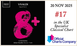 Alchemists of the Italian Baroque La Serenissima have returned to the studios of Signum Classics to record Vivaldi Opus 8 Vol. 2 (or, more properly, Il cimento dell’armonia e dell’inventione—libro secondo): six concertos for violin, strings and continuo. With two additional concertos filling out the programme, this is Vivaldi at his vivacious best. Adrian Chandler directs from the violin.