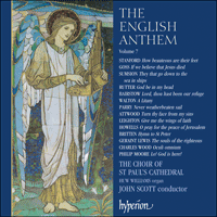 This latest addition to the long-running 'English Anthems' series presents fourteen more favourites from the Anglican repertory. The earliest work on the disc is Thomas Attwood's beautiful Turn thy face from my sin, from which we move into anthems by Sir John Goss, Stanford, Sumsion, Bairstow and others. The middle of the twentieth century is represented by Howells, Britten and Walton's perennially popular A Litany ('Drop, drop, slow tears') while we then have exciting new works by Geraint Lewis and Philip Moore, alongside Rutter's famous—and enchanting—God be in my head.