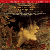 Each of the four instalments of the series charts Fauré’s progress from youth to old age from a different angle, and with different repertoire. The theme of the first volume was Au bord de l’eau, both the title of a famous mélodie, and a reminder of how fascinated Fauré was with aquatic and nautical subjects; Un paysage choisi takes the listener back (mostly) to dry land in all its astonishing diversity. The two subsequent recitals will be arranged under similarly broad themes that will take the listener chronologically through the composer’s songs, each programme containing examples of the three styles that, very broadly speaking, characterize this songwriter: the young salon charmer, the mature master with a tendency to ever-deepening musical experiments, and the inscrutable sage whose music remains as challenging as any written in the twentieth century. Taken together these discs will comprise an intégrale of the composer’s mélodies. It is the breadth of these journeys, and the variegated terrain through which they pass, that underlines the greatness of this particular composer and his genius for continual metamorphosis.