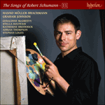 Graham Johnson’s monumental and triumphant complete Schumann Songs edition comes to an end with this eleventh disc, featuring Hanno Müller-Brachmann. A devoted lieder singer who has performed with some of the world’s greatest pianists, Brachmann i ...» More |