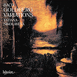 The ‘Goldbergs’ are at once a contrapuntal tour de force, a celebration of keyboard virtuosity (several variations—especially those with hand-crossings—suggest that Bach knew Domenico Scarlatti’s recent Essercizi), and an exploration of every conceivable Baroque affect, from devil-may-care brilliance to profound reflective inwardness. Bach builds his mighty structure on a floridly galant ‘aria’ which appears in Anna Magdalena Bach’s notebook as ‘sarabande’, and may date from several years earlier. Some scholars have questioned the theme’s origins, though no one has made a convincing case that it is not Bach’s own. While several of the variations hint at the aria’s melodic outline, the chief binding elements are the strong, simple bass line (beginning with a descending scale—a traditional seventeenth-century pattern), the implied harmonies, and the phrase structure, with regular two-bar phrases integrated into two sections of sixteen bars each.