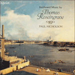 Das Konzert in D-Dur von Thomas Roseingrave ist eine Verkleinerung eines verschwundenen Orchesterkonzertes handelt, das Roseingrave am 8. März 1750 in Dublin aufführte. Das Werk ist in D-Dur verfaßt, mit Fanfaren ähnelnden Tutti-Passagen in den äußeren Sätzen. Es war nicht schwer, es für zwei Trompeten, Timpani und Streicher zu instrumentieren. Roseingrave wurde 1688 als Sohn eines Organisten und Komponisten in Winchester geboren. Er studierte am Trinity College in Dublin und in Venedig und etablierte sich in den 20er Jahren des 18. Jahrhunderts in London, wo er 1725 zum Organisten von St. George’s in Hanover Square bestellt wurde. Seine späteren Jahre waren vom Wahnsinn überschattet, und 1744 mußte er seine Stellung aufgeben. Um etwa 1750 kehrte er nach Dublin zurück, wo er 1766 starb. Roseingraves Konzert ist ein leidenschaftliches Werk nach dem Vorbild Vivaldis, jedoch in bezug auf seinen Stil und seine Struktur recht primitiv. Es wurde vermutlich lange vor 1750 komponiert und könnte sogar eines der frühesten Klavierkonzerte eines englischen (bzw. britischen) Komponisten sein.