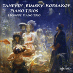 Taneyev & Rimsky-Korsakov: Piano Trios‘Sections of persistent drama, a pensive piano solo, a deeply felt cello and violin duet and a thrilling climax make this an irresistible piano trio … the thrilling performances of the Leonore Piano make these late Romantic works come alive’ (Audiophile Audition, USA)